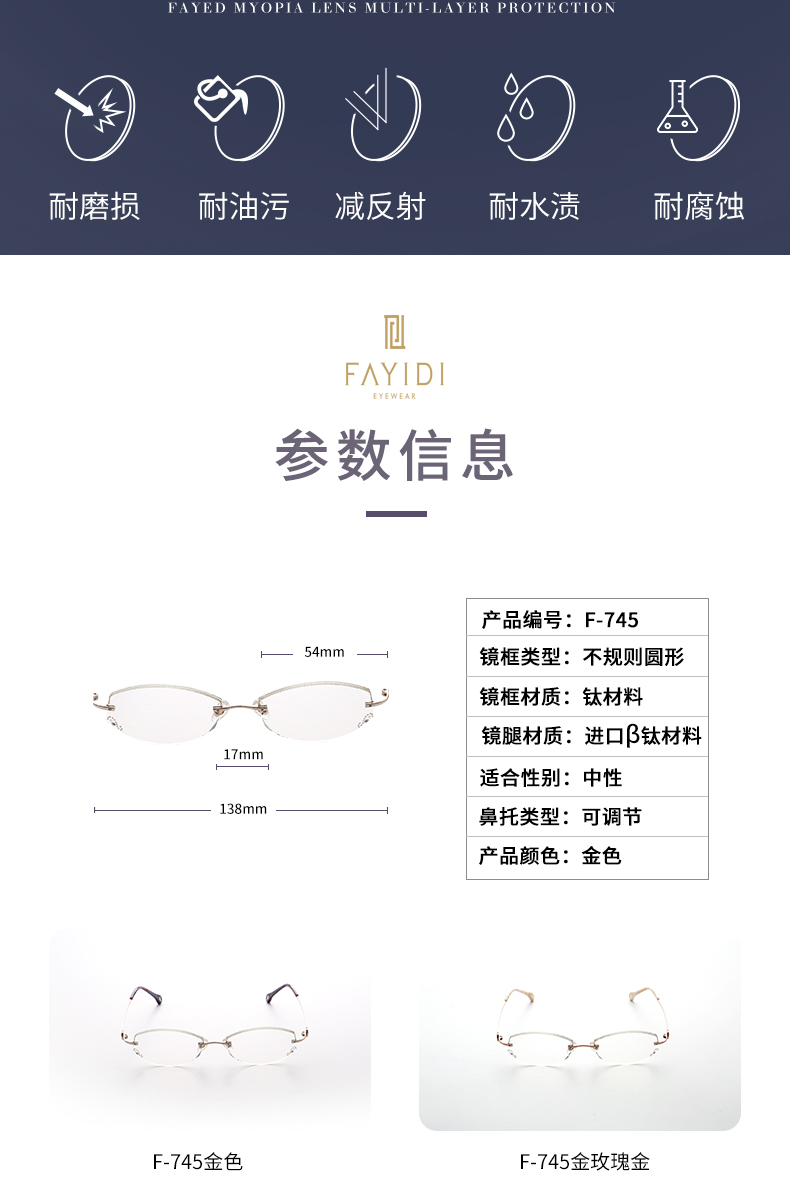 新品法依笛钛架女士眼镜时尚商务休闲舒适F-745