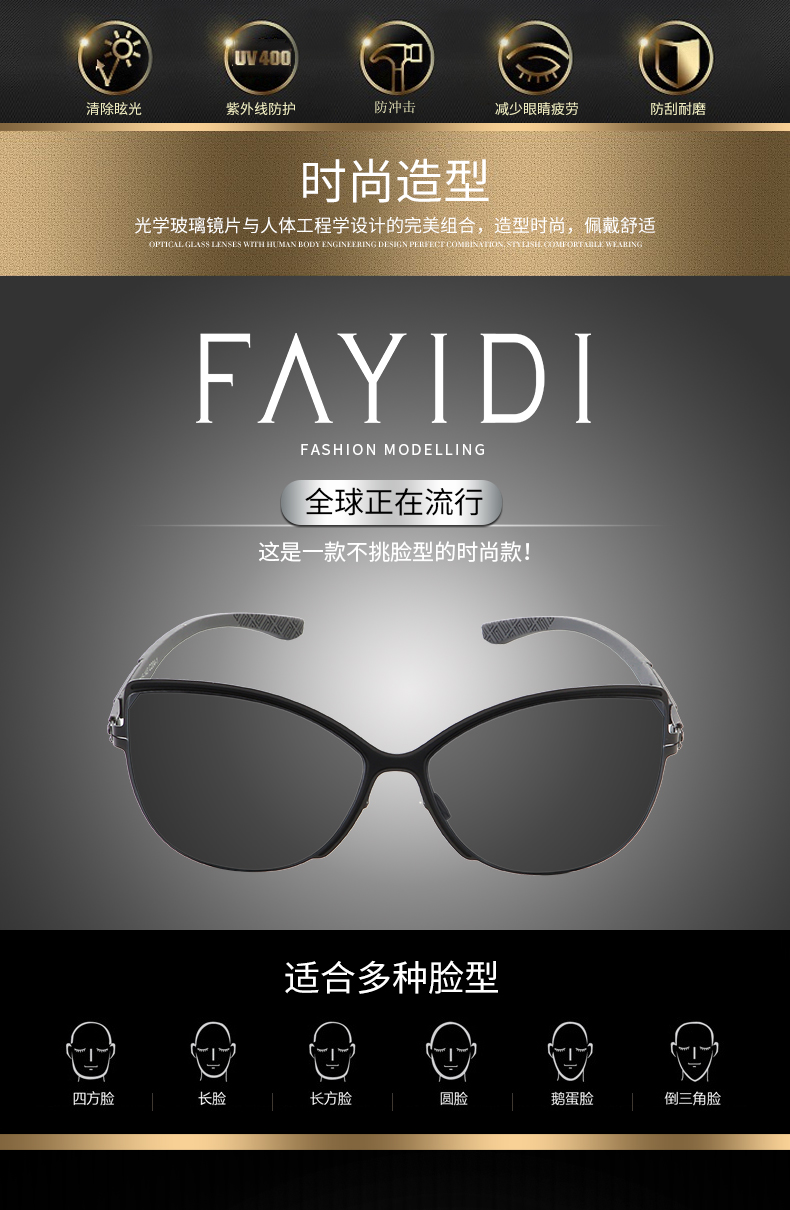 法依笛女士偏光太阳镜可配近视F-7781